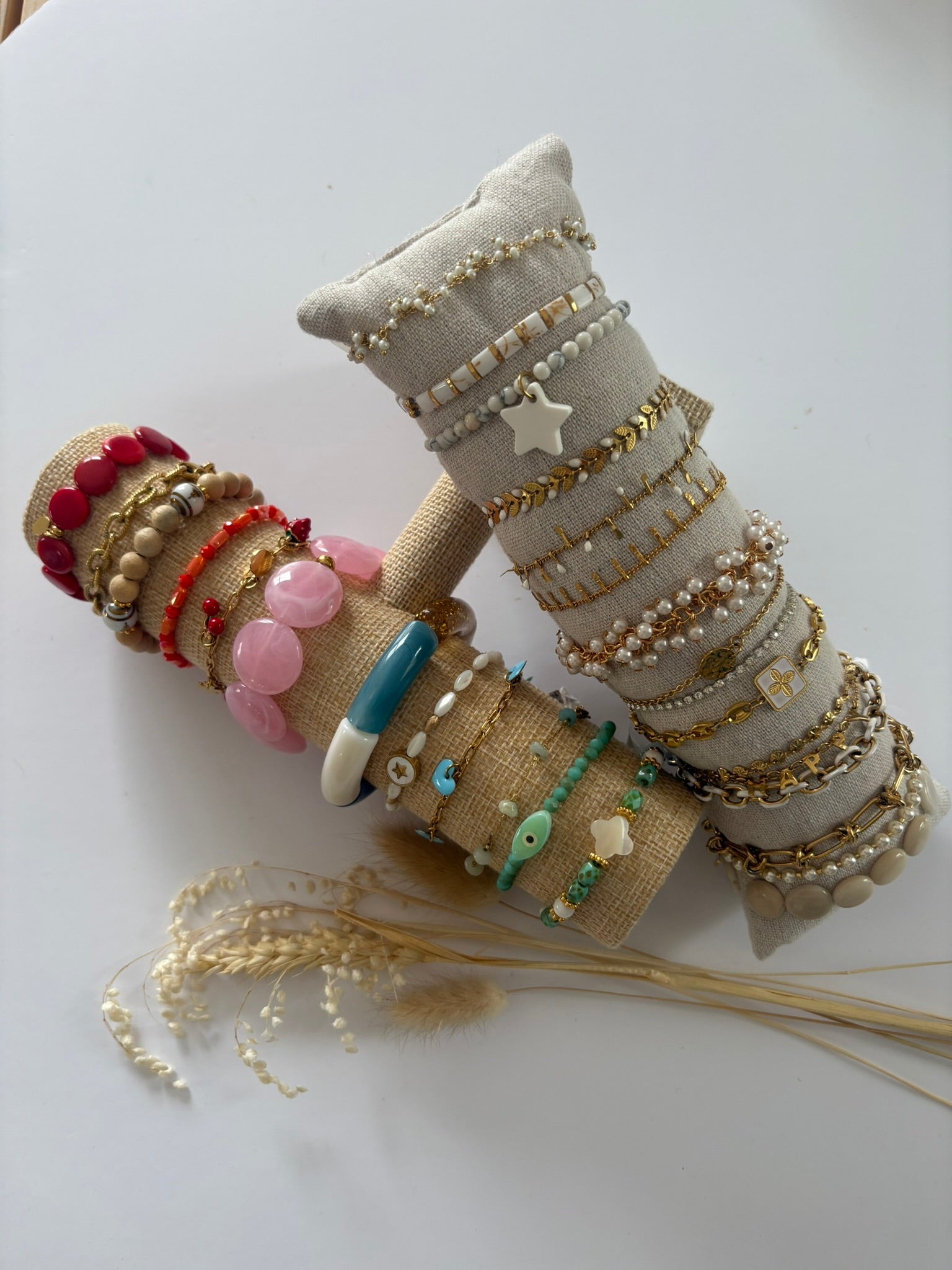 Pour ne pas mettre tous les jours les mêmes bijoux, pensez à les trier par catégorie ou par couleur et à les accrocher sur votre mur ou sur un support sur un meuble, vous verrez que vous aurez envie de changer plus souvent .