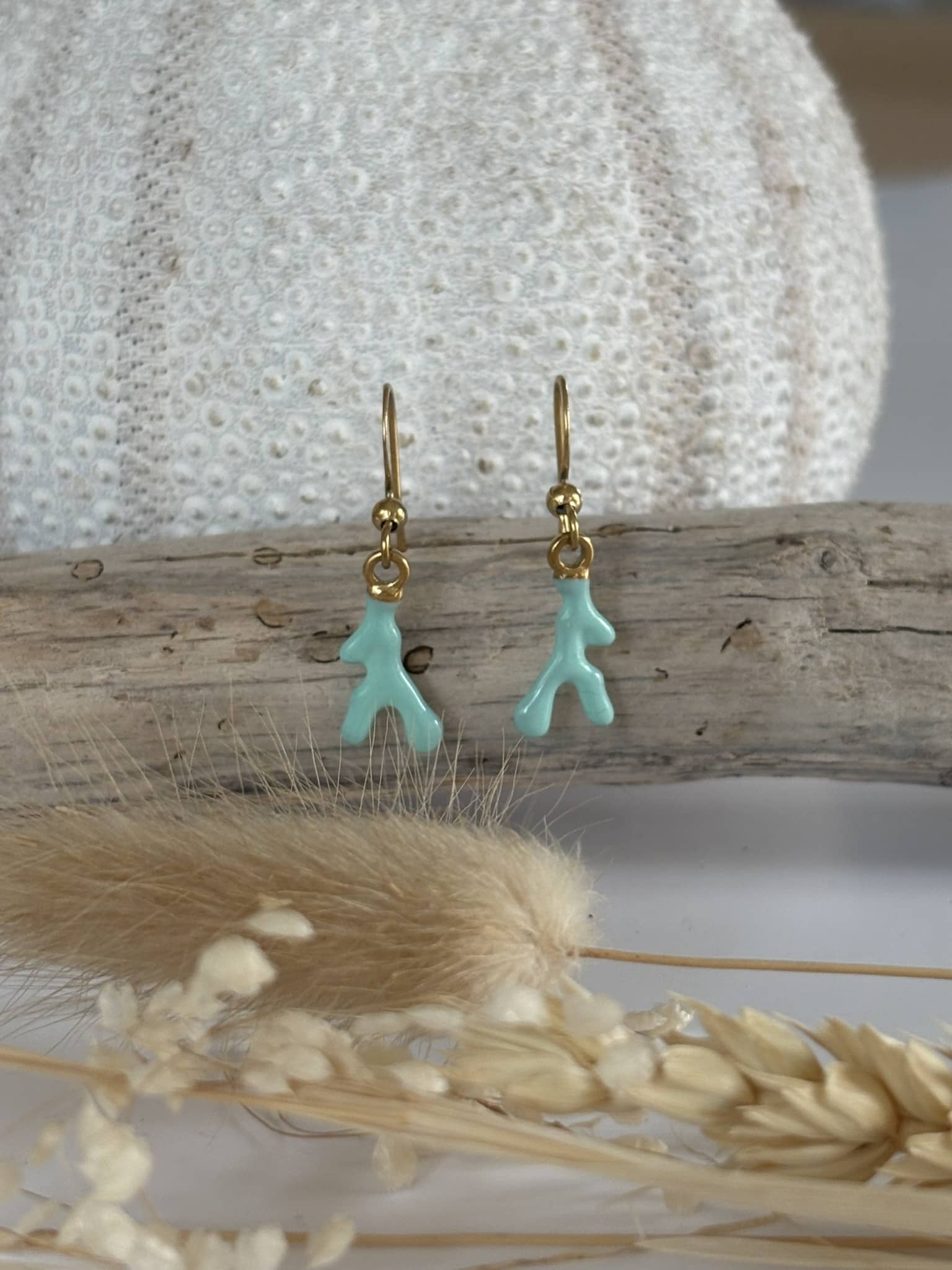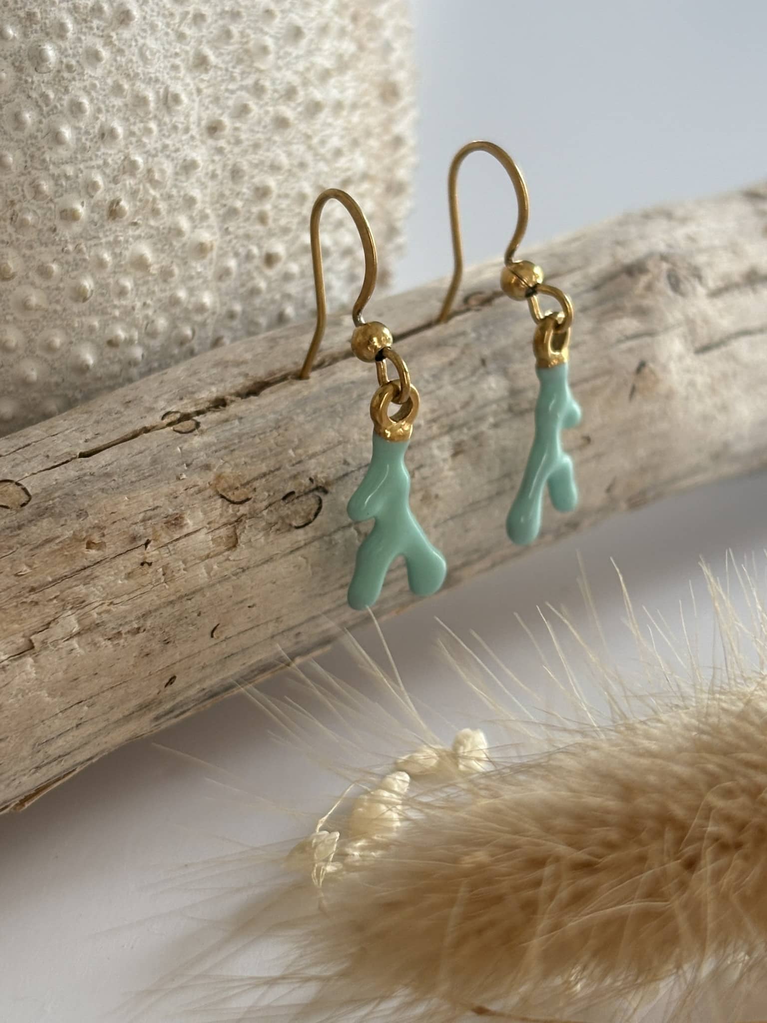 crochet en acier pendentif forme corail époxy Turquoise