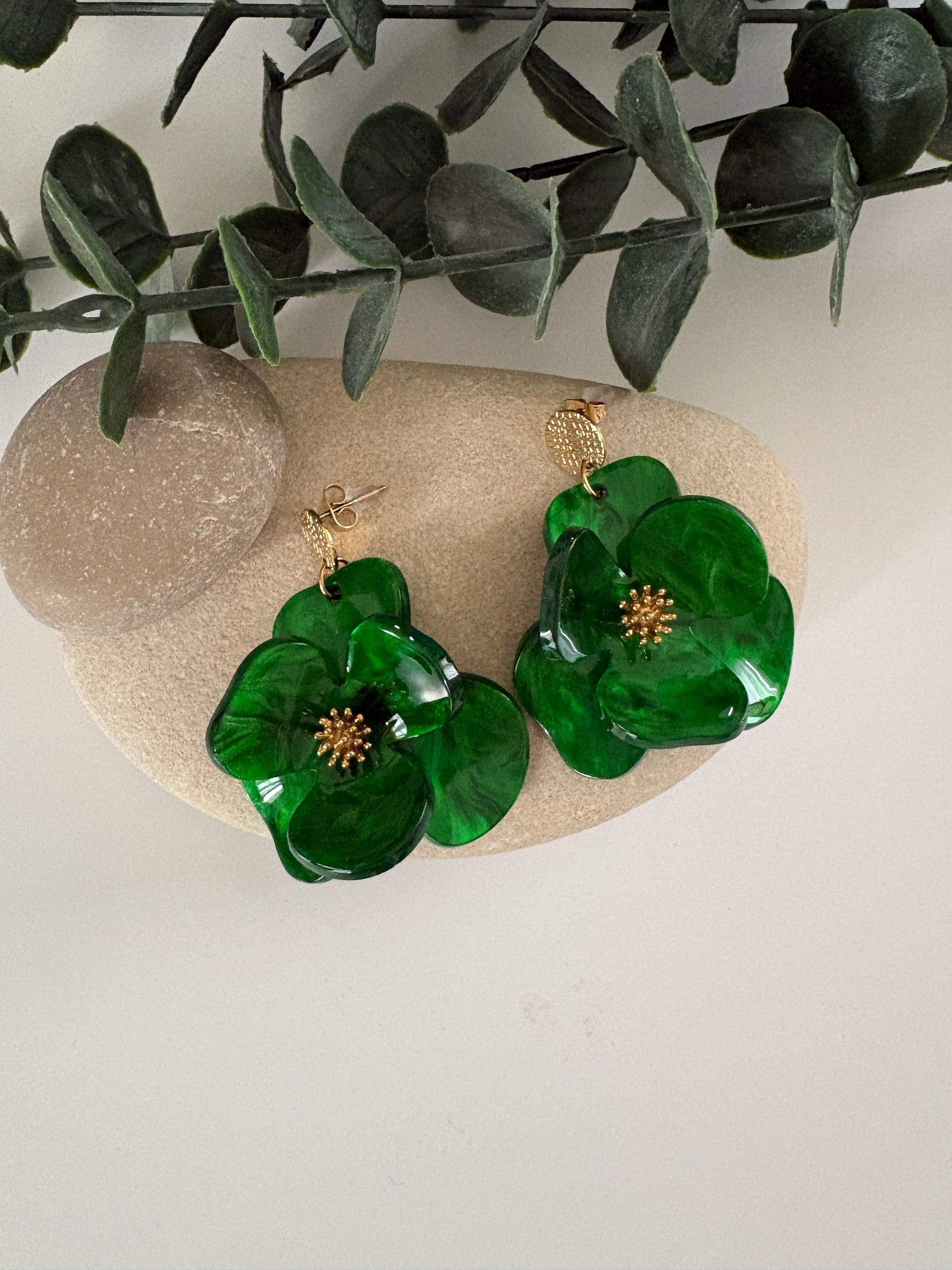 Boucle d'oreilles clou diamanté acier inoxydable , fleur en acrylique en relief