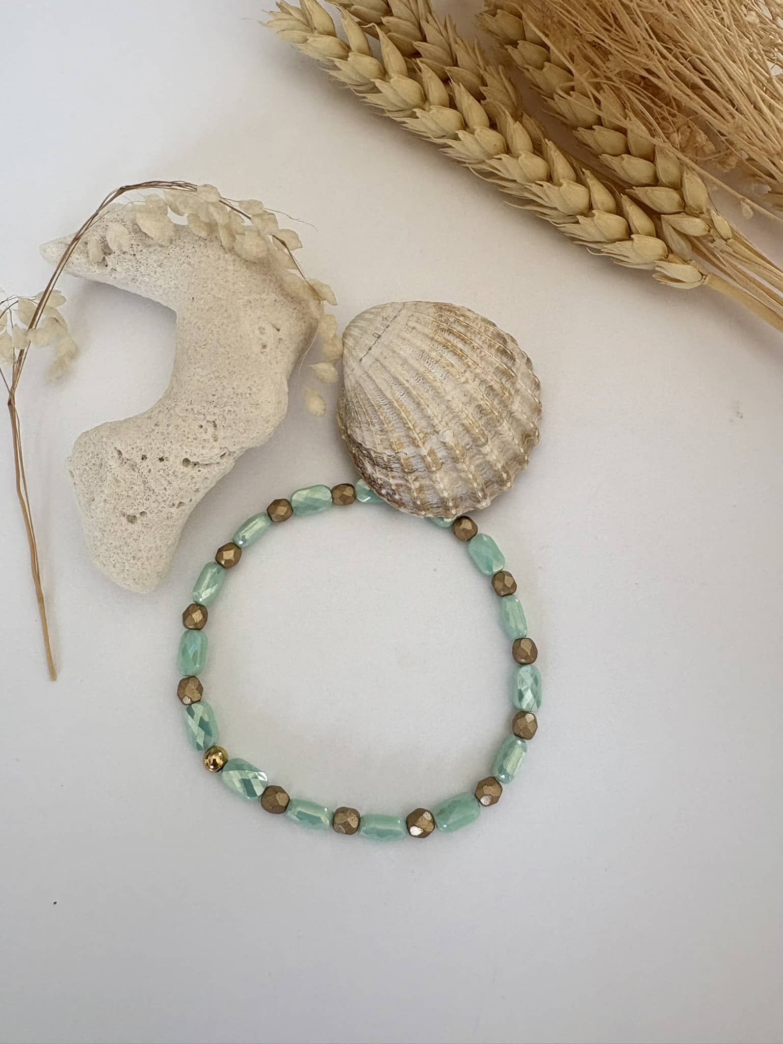 Joli bracelet monté sur élastique en perles en verre facettées qui reflète la lumière
