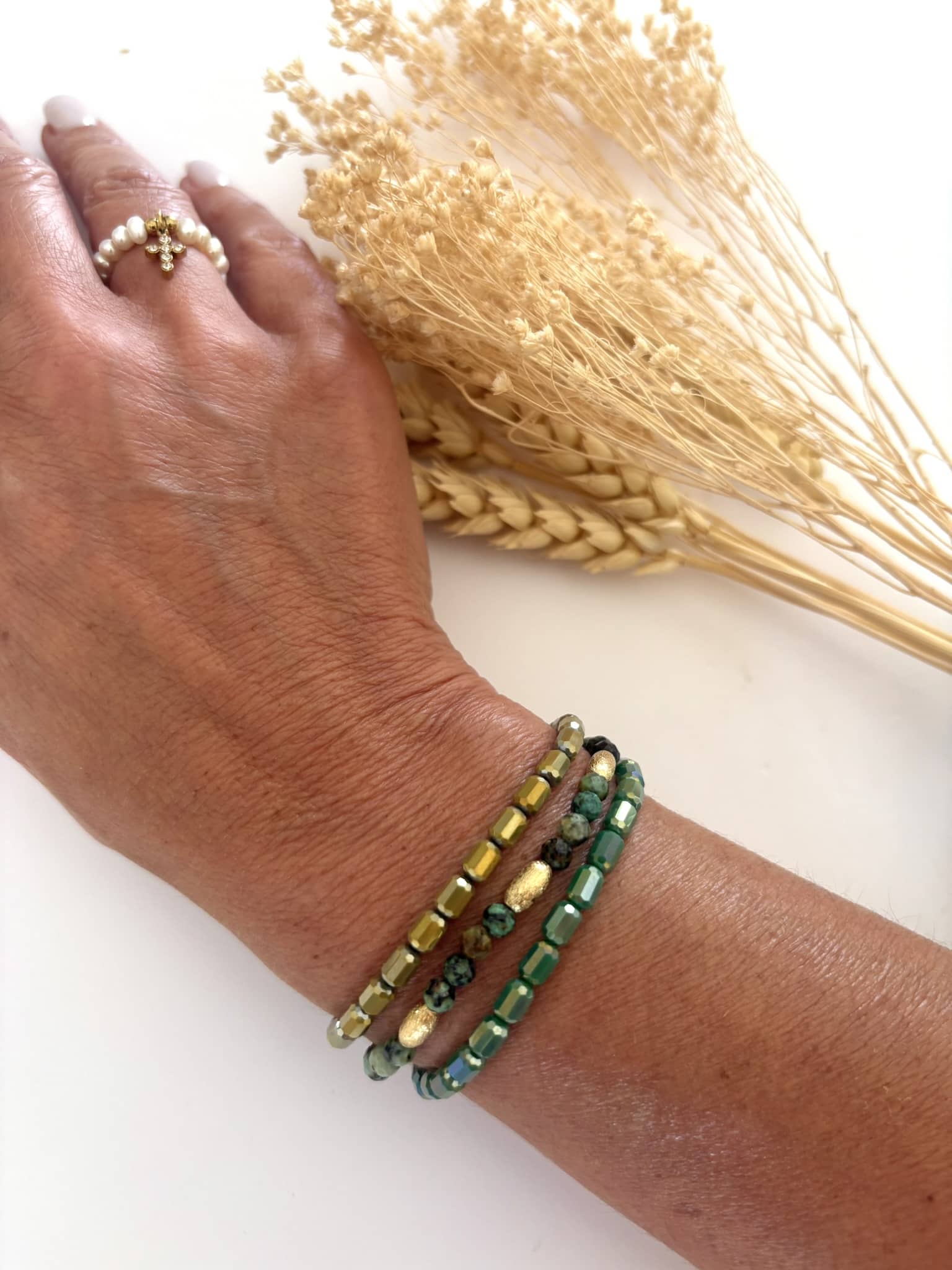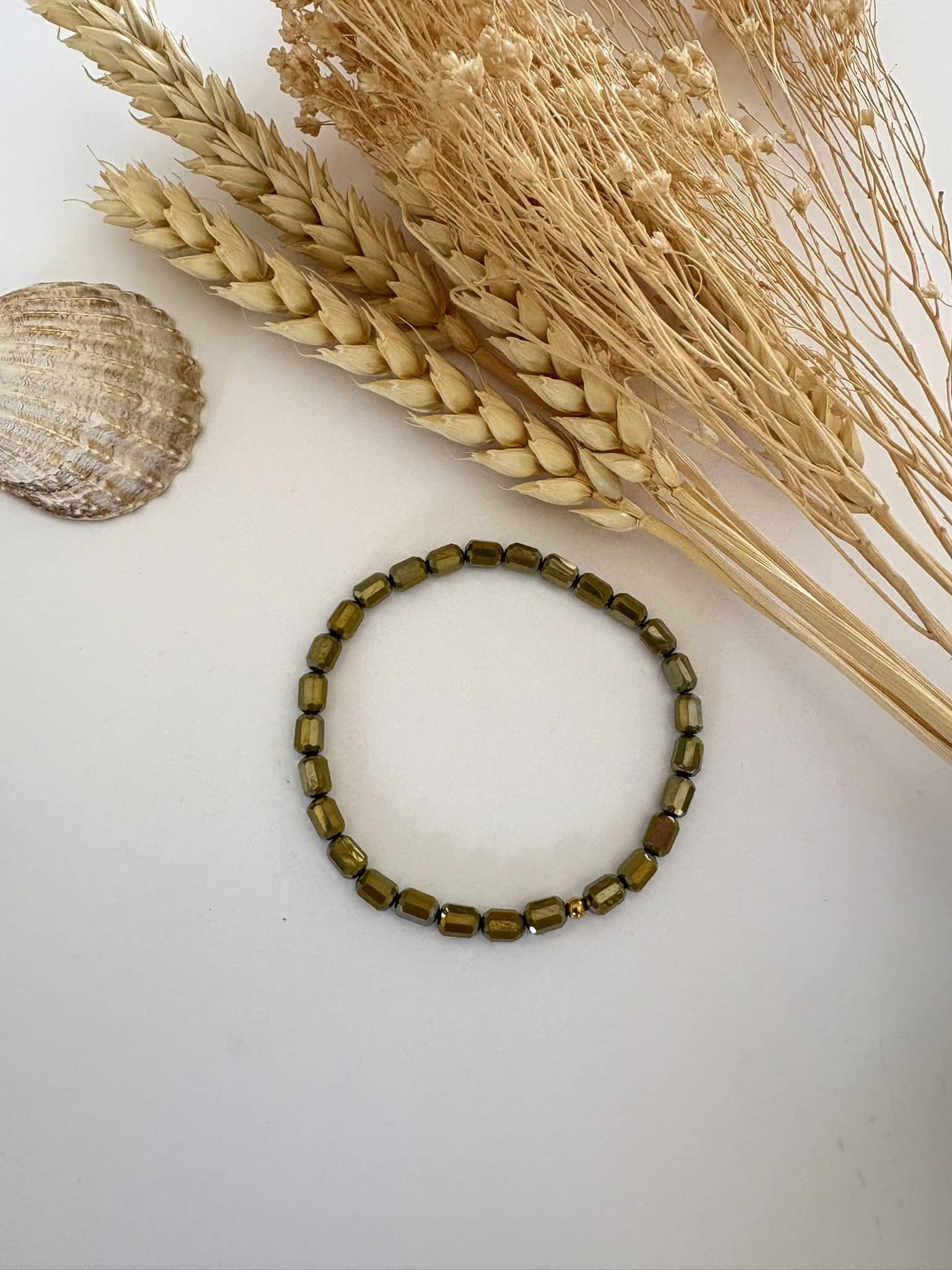 Bracelet "perles verre " kaki*