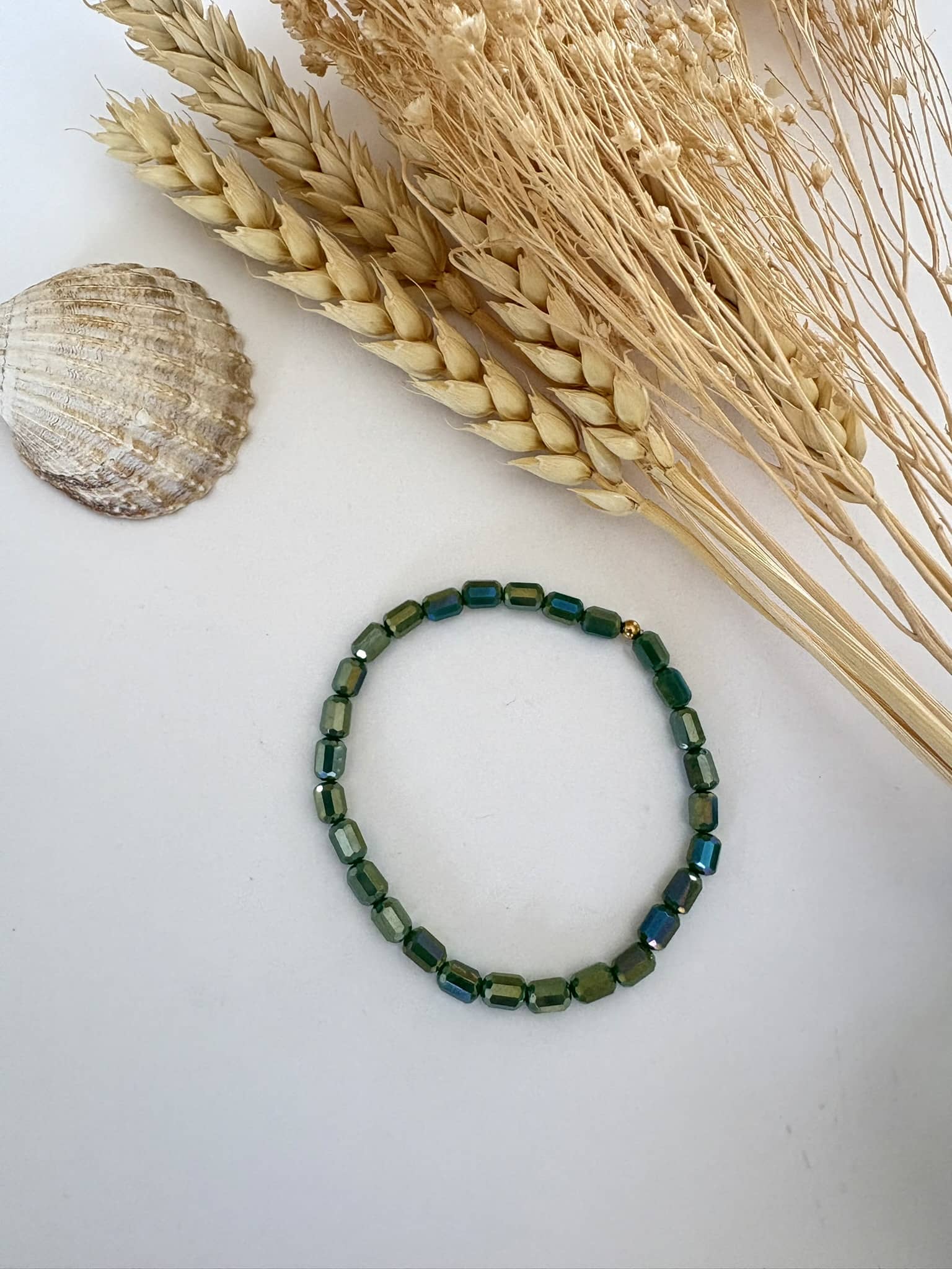 Joli bracelet monté sur élastique en perles en verre facettées qui reflète la lumière