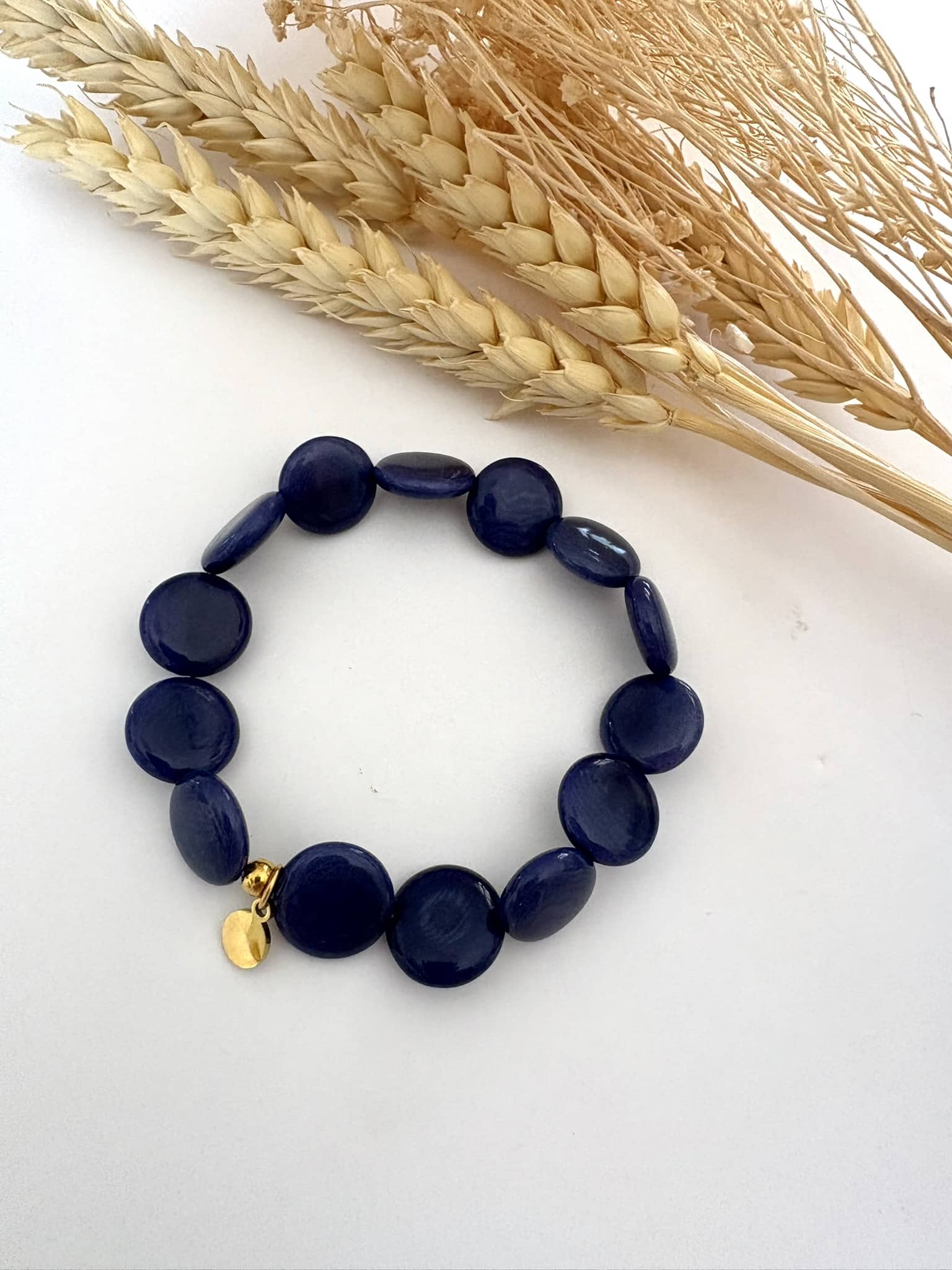 Joli bracelet monté sur élastique en Tagua, petite graine naturelle provenant d'un palmier, c'est l'alternative idéale à l'ivoire naturel les palets sont tous unique car la nature ne fait pas de graines identiques .