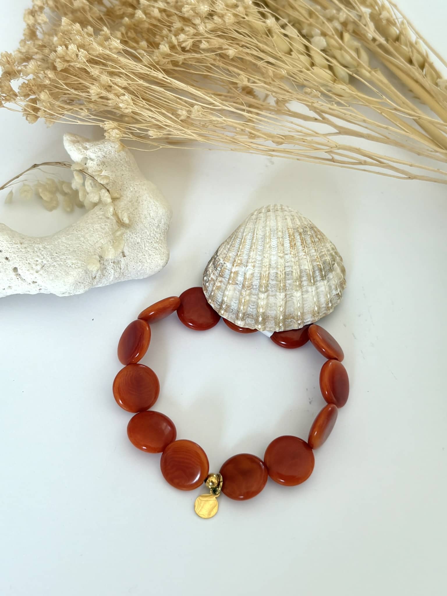 Joli bracelet monté sur élastique en Tagua, petite graine naturelle provenant d'un palmier, c'est l'alternative idéale à l'ivoire naturel les palets sont tous unique car la nature ne fait pas de graines identiques .