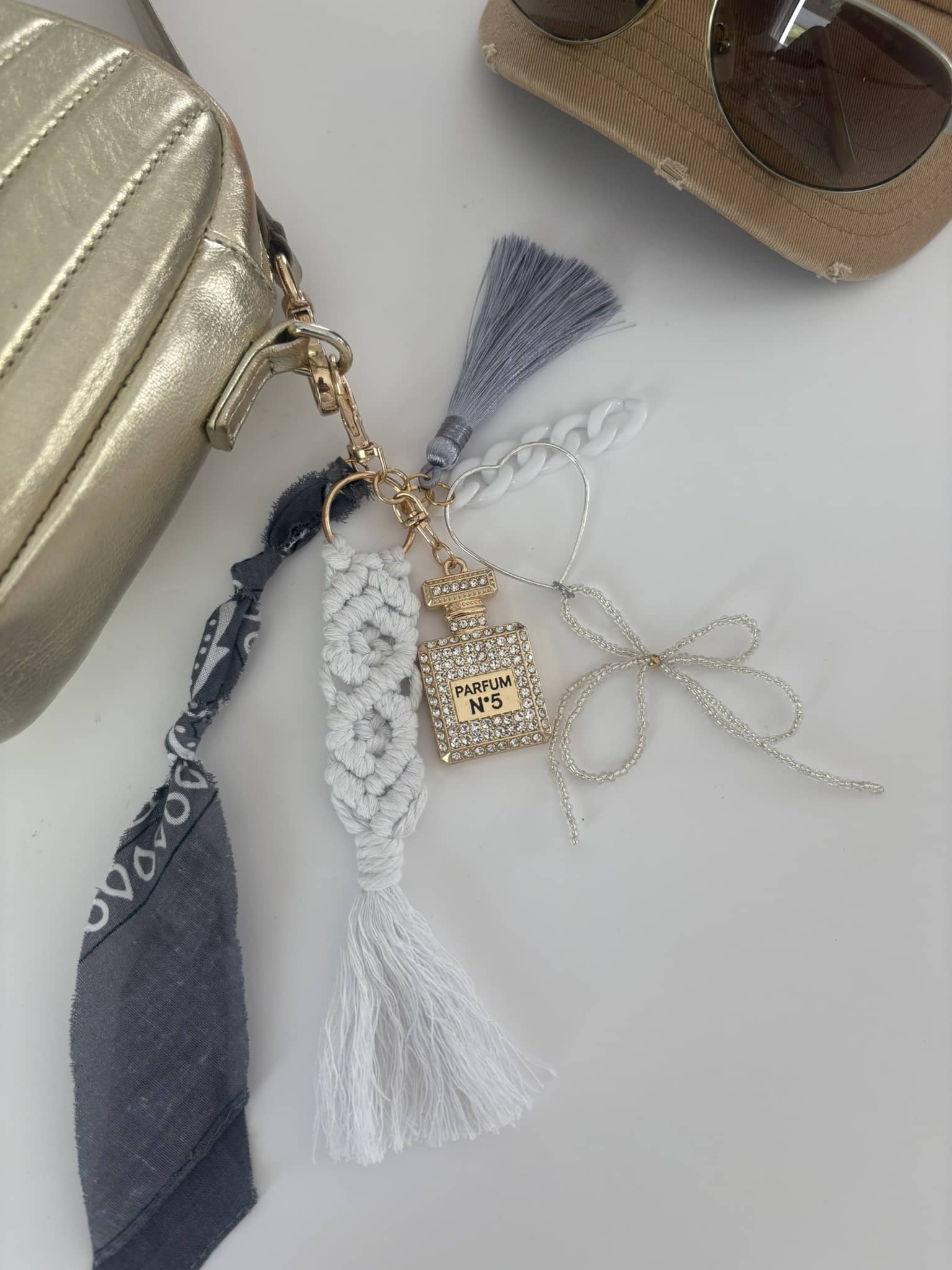 Porte Clé "ParfumN5/ Noeud perlé"*