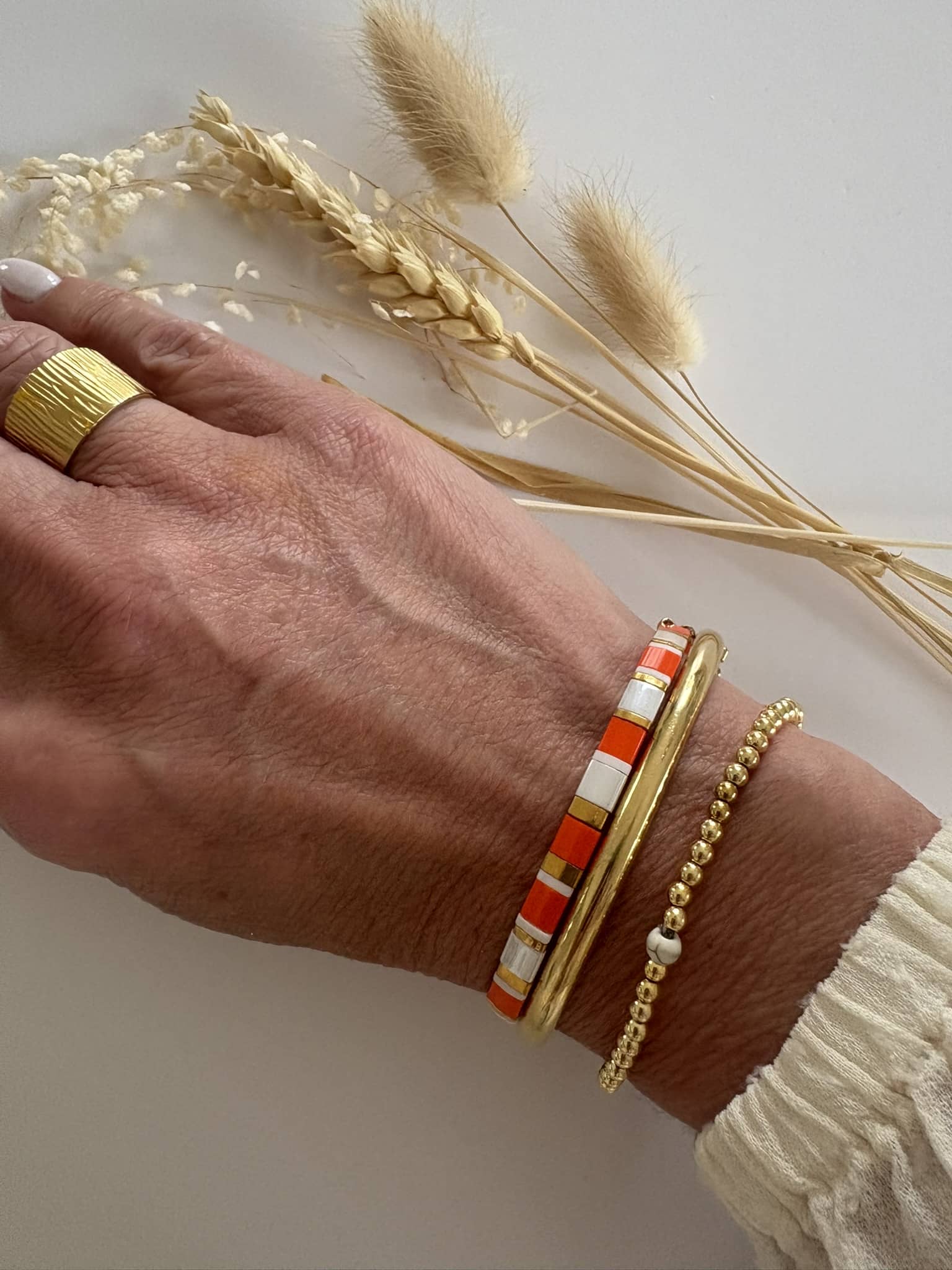 Tons crème, doré et orange . Un couleur pep's qu'on adore !